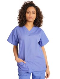 Professional reversible scrub tunic that features one hip pocket (inside and out), coloured black neckline for identification and manufactured in a lightweight fabric.