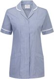A fine striped mid-weight fabric tunic in traditional styling offers a modern take on a traditional healthcare tunic. This tunic festures a contrast collar, alongside action back pleats with aid in comfort and ease of movement.
