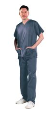 A smart unisex scrub top that features one left chest pocket with pen division, two lower patch pockets and side vents.